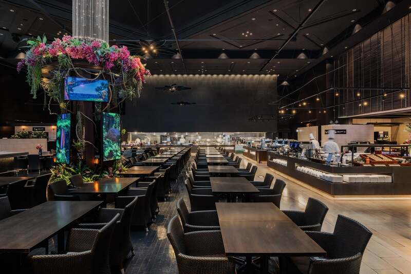 ディナーブッフェの会場となる「LUXE DINING HAPUNA」では、シェフがその場で切り分けるローストビーフなど、ライブキッチンを含む約80種類の多彩なメニューが揃っています。