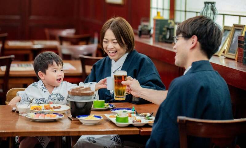 特典:小学生&布団・食事付き幼児は大人料金の半額、夕食時アルコール含む60分飲み放題無料(公式HP限定)