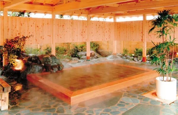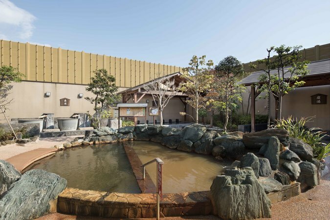 岩に囲まれた源泉かけ流し露天風呂や、超軟水高濃度炭酸泉、大浴槽、ジェットバス、バブルバス、サウナ、岩盤浴などを完備。