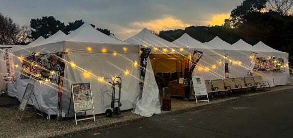 服部緑地での開催は今年で3回目となり、毎年多くの来場者で賑わう人気イベントです。週末には行列ができるほどで、屋外で炭火を囲みながら味わう冬の味覚をテーマに、寒い季節でも温かく心がほぐれる空間を提供しています。