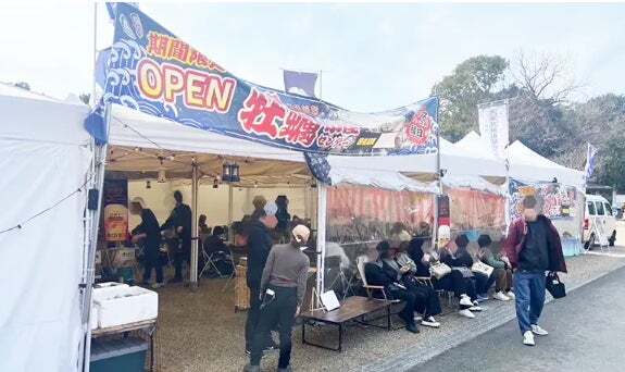 会場には子供向けの縁日コーナーが設けられており、わんちゃんも一緒に楽しめるテラス席も用意されています。焼き牡蠣を味わえるだけでなく、冬でも笑顔あふれるイベント空間として、家族でのおでかけにぴったりです。