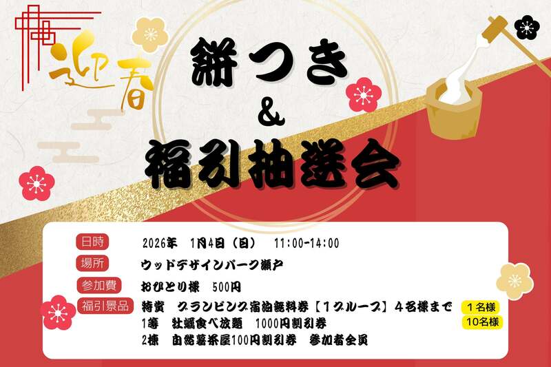 愛知県瀬戸市の「ウッドデザインパーク瀬戸」で、2026年1月4日(日)に「新春もちつき&福引抽選会」が開催されます。
