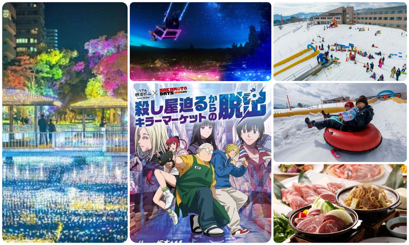 人気アニメ「SAKAMOTO DAYS」コラボのリアル脱出ゲームや、幻想的なイルミネーションイベント、冬限定のスノーパーク、無料イベントなど、大人も子供も楽しめるイベントが充実しています。