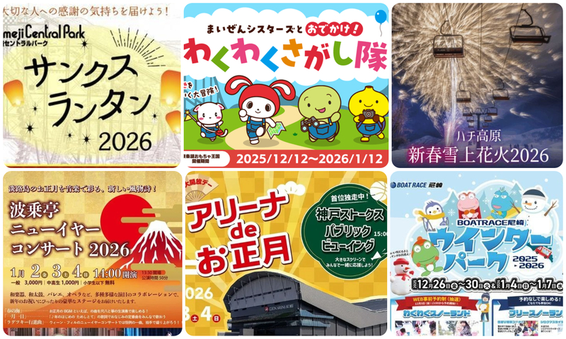 2026年1月1日(木・元日)・2日(金)・3日(土)・4日(日)の三が日やお正月休みに、兵庫県で開催されるイベントのなかから、親子で楽しめるイベントを厳選してお届けします。