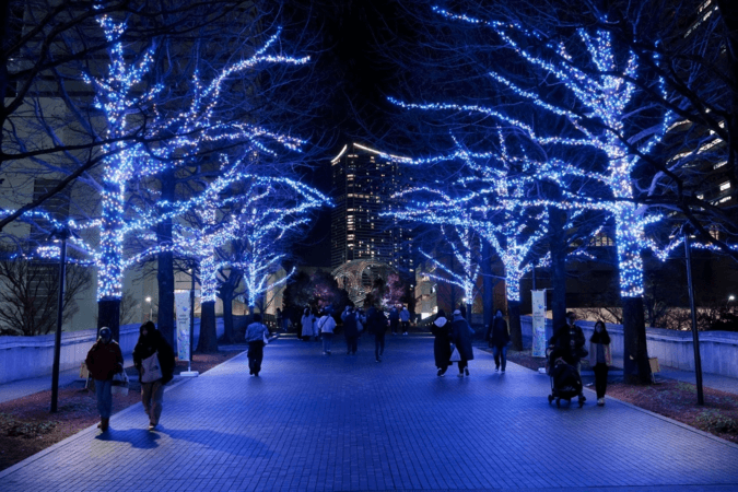 横浜駅東口から続く約1.5kmにわたる街並みを、25万球ものブルーのイルミネーションが幻想的に演出します。