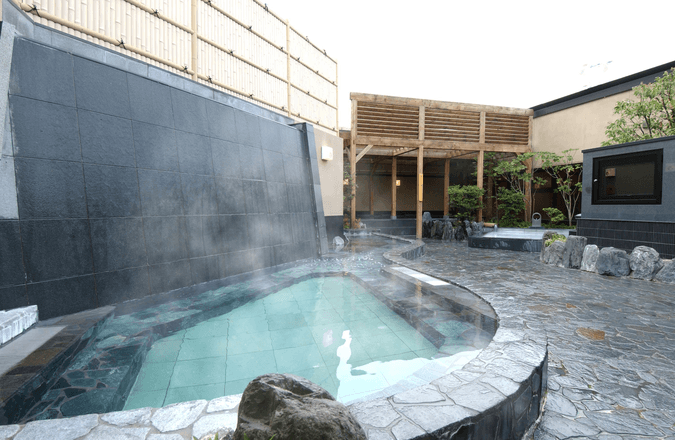 地下1,500mから汲み上げた炭酸水素塩水を使用しており、湯船に溜まる頃には黒色のトロトロしたお湯に変化。露天風呂には、健康増進に良い「水素風呂」や「黒湯炭酸泉」など、特徴的なお風呂が満載です。