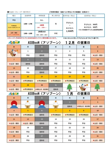 • 2026年1月1日(木・祝):休日料金/【元旦限定】ピュアキッズからのお年玉