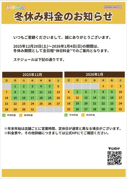 - 2025年12月29日(月)〜12月31日(水):休日料金