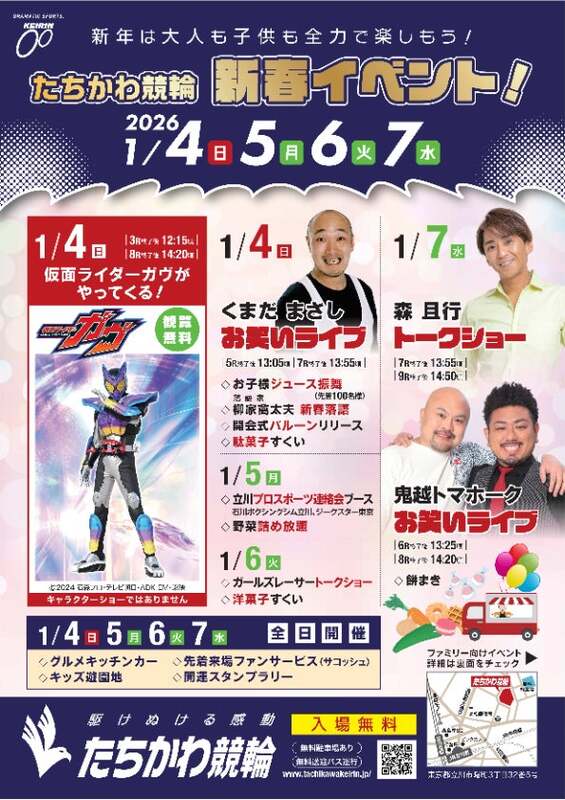 森且行さんと餅まき!立川競輪で親子向け新春祭! 仮面ライダーガヴや人気芸人も登場