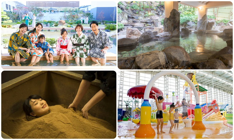 大浴場や露天風呂、貸切風呂、岩盤浴に加え、食事やゲーム、大衆演劇など多彩な設備やエリアがあり、家族みんなで1日中楽しく過ごせます。