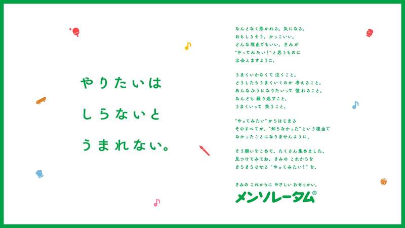 本イベントは、ロート製薬のスキンケアブランド「メンソレータム」が主催する体験型イベントです。子供がスポーツや音楽、表現、ものづくりなど、さまざまな「やりたい!」と出会うことで、自らの興味関心を広げ、未来への一歩を踏み出すきっかけを提供します。