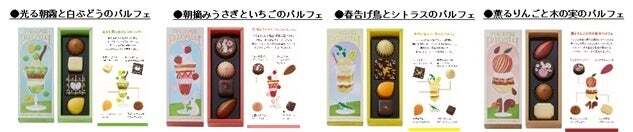 イオン限定の「しののめ果実園」は、動物たちと過ごす穏やかな春の果実園をイメージしたパッケージで、果実を使った4つのパルフェを表現した9品目を展開します。