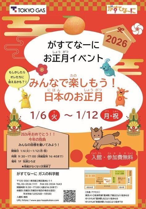 2026年1月12日(月・祝)まで、「がすてなーに ガスの科学館」で、お正月の文化を楽しく体験できるイベントが開催されています。
