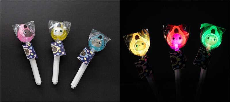 光るキャンディー「LOVOTピカピカキャンディー」は、レモン・サイダー・いちごの3種類で各1,200円です。電気を消すと光る楽しい仕掛けがあり、お土産にもおすすめです。