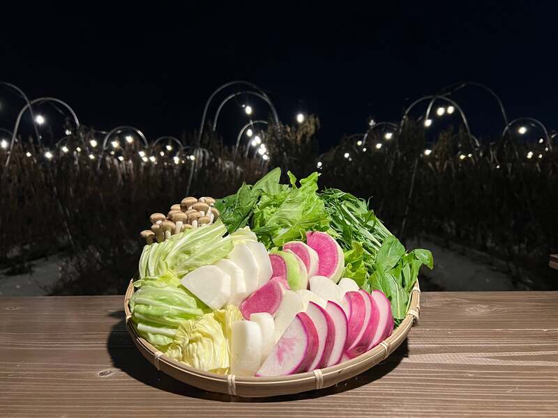 収穫した京野菜を星や月に見立てた、オリジナルの「星空鍋」も楽しめます。鍋の中には銀河が広がり、見た目だけでなく味でも楽しめる、ここだけの冬限定メニューです。