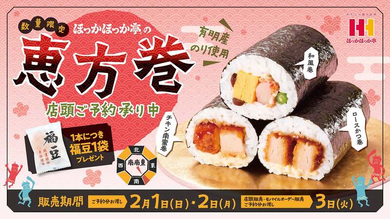 全国788店舗を展開する持ち帰り弁当チェーン「ほっかほっか亭」が、節分に向けて恵方巻の店頭予約を受付中です。