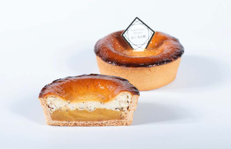 おいも日和の「安納芋と紅茶のバスチータルト」は、自社農園産の安納芋とクリームチーズのハーモニーに、アールグレイの香りが加わります。