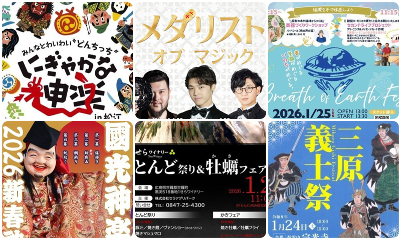 2026年1月24日(土)と1月25日(日)の週末に、広島県をはじめ中国地方で開催されるイベントをご紹介しました。