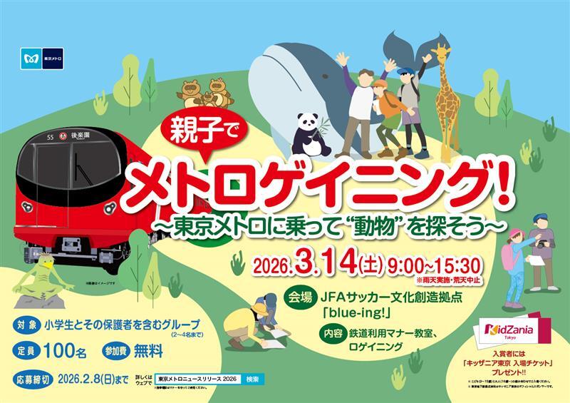 東京都文京区のJFAサッカー文化創造拠点「blue-ing!」で、2026年3月14日(土)に「親子でメトロゲイニング!〜東京メトロに乗って"動物"を探そう〜」が開催されます。