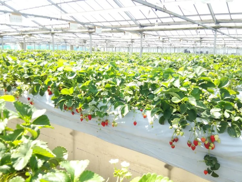 高設栽培なので、子供はちょうど良い位置に、大人は屈まずに楽な体勢でいちご狩りを楽しめます。