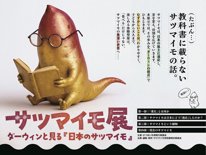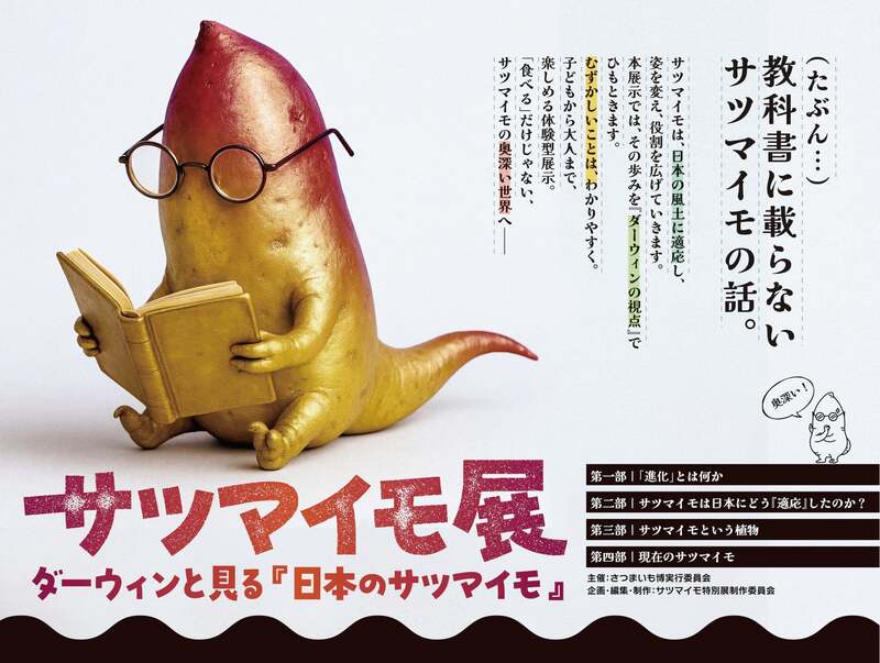 この展示は、進化論に注目しながらサツマイモの歴史を学べる、これまでにない斬新な内容です。