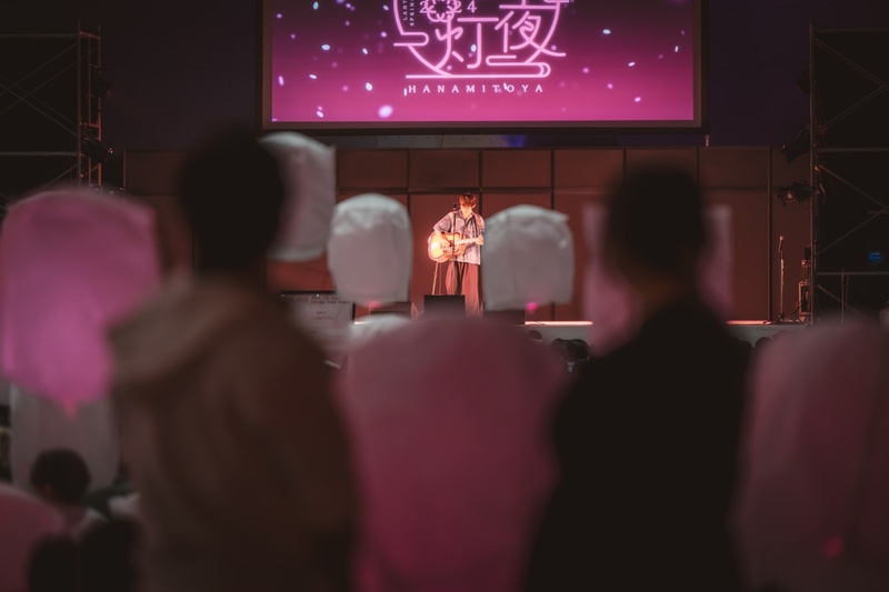 「花見灯夜2026」では、最大1,500個のスカイランタンが同時に浮かび上がるスカイランタンリリースを体験できます。参加者は約15分間、アーティストの生演奏とともに、桜色に輝くランタンの美しさに包まれた時間を楽しめます。大人チケット1枚につき、ランタンが1基ついてきます。