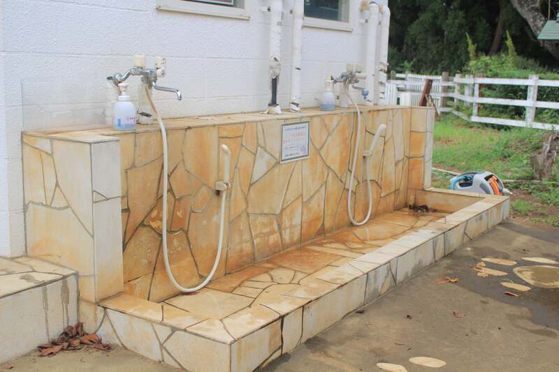 マイクロ・バブルシャワーでは、細かい泡で毛穴や皮脂の汚れまできれいに洗えます。足洗い場も用意されており、タオルは自由に使えます。