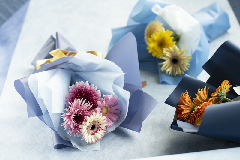 数種類のガーベラから1輪を選び、好みのカラーに染め上げるガーベラ染色体験も開催されます。染色したガーベラを彩り豊かなガーベラと組み合わせ、夜空をイメージした包み紙でラッピングすれば、オリジナルブーケが完成します。