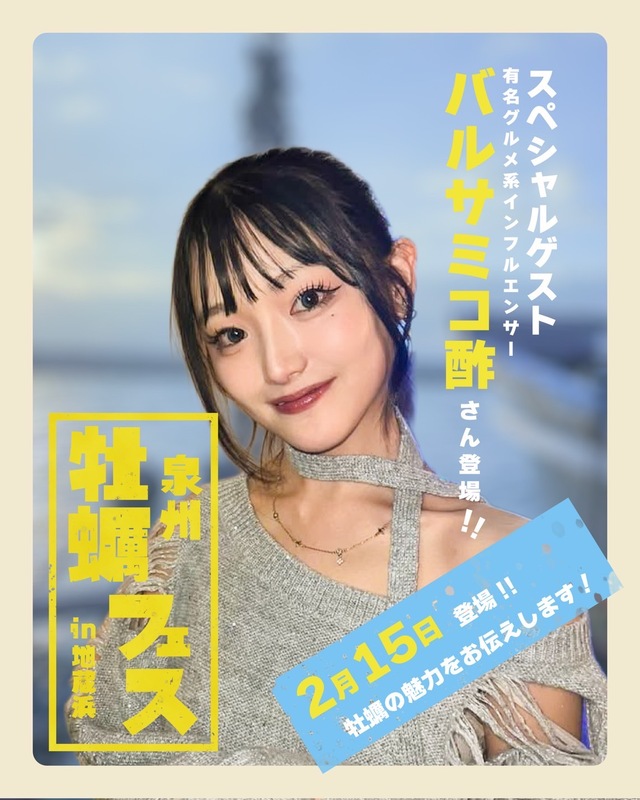 2月15日(日)には、グルメ系インフルエンサーの「バルサミコ酢」さんが会場に来場し、牡蠣の魅力を伝えてくれます。