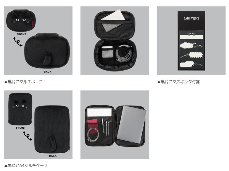 注目は、黒ねこの耳としっぽをあしらった、ふわふわの肌触りがたまらないマルチポーチとA4マルチケース。