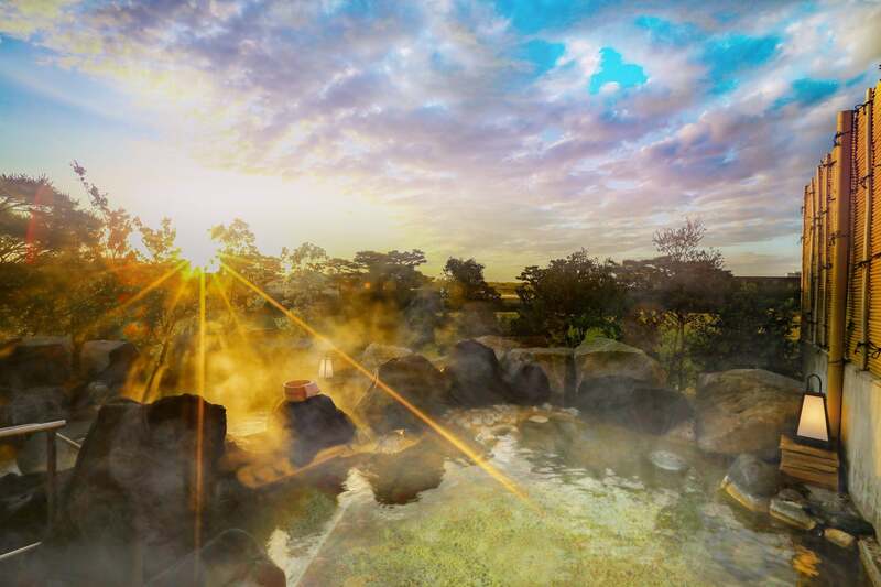 地下1,500mから湧き出る松島温泉の露天風呂では、日中は青空、夜は満点の星を眺めながら湯あみを楽しめます。
