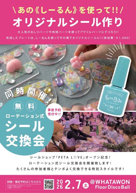 会場となるWHATAWON内 Floor Disco Ballでは、ローテーション式という新しいスタイルのシール交換会を開催します。