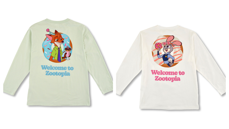 アイテムは、タンブラーやポーチなどの雑貨から、トートバッグやキャップなどのアパレルまで幅広く展開。長袖Tシャツは、ペアで並ぶとジュディとニックが乾杯しているように見える背面アートがポイントです。