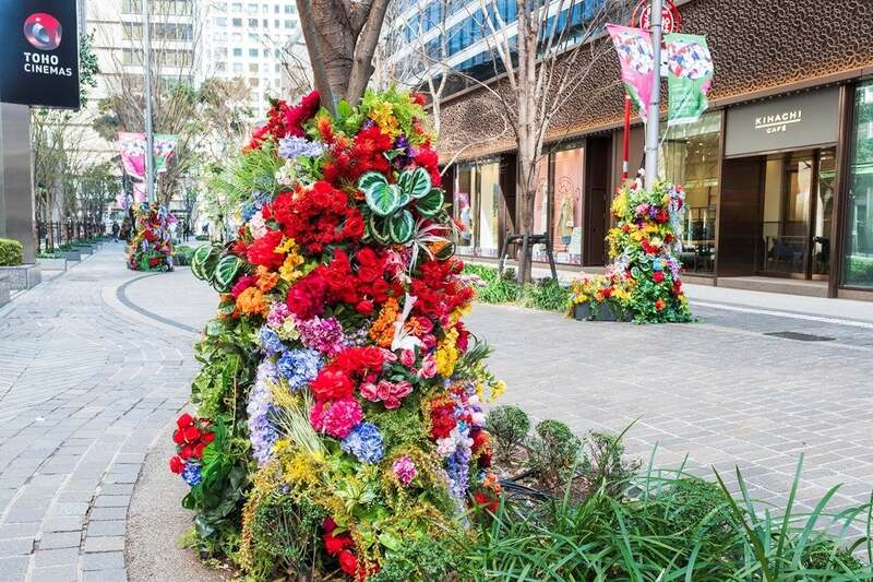 買い物や映画鑑賞の前後にも、華やかな"花の道"を楽しめるスポットとして、エリア一帯に春の彩りをもたらします。日比谷仲通りの装飾は4月中旬頃まで実施予定です。