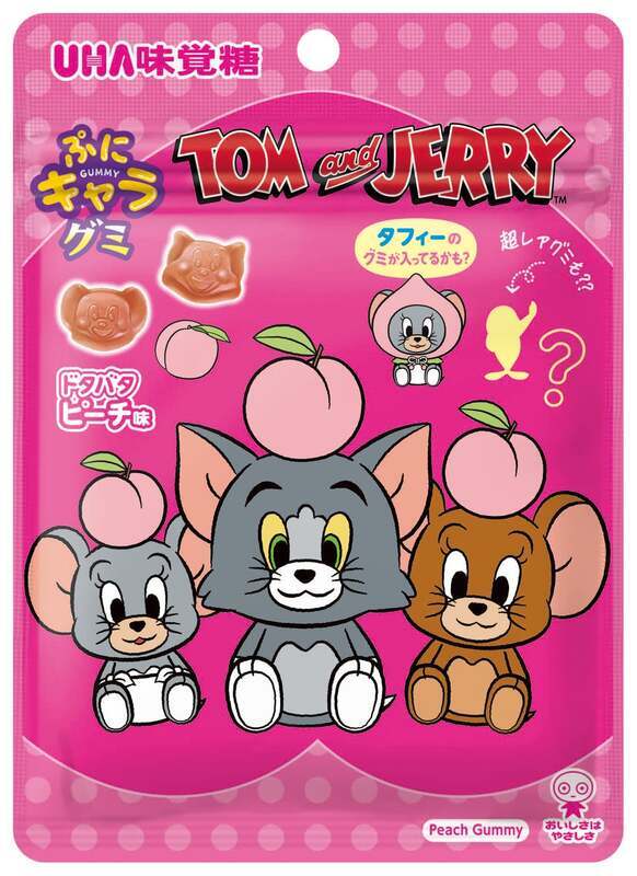 トムとジェリーの顔を再現したかわいいグミで、作中で頻繁に追いかけっこをしているトムとジェリーにちなんだ「ドタバタピーチ味」を採用。