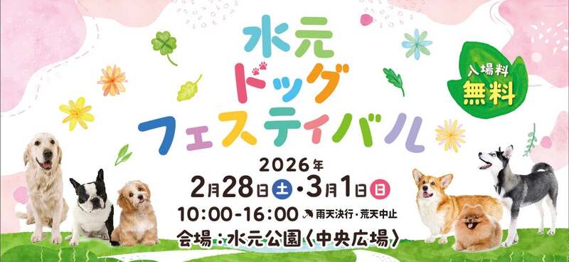 東京都葛飾区の「水元公園 中央広場」で、2026年2月28日(土)・3月1日(日)の2日間、「水元ドッグフェスティバル2026」が開催されます。