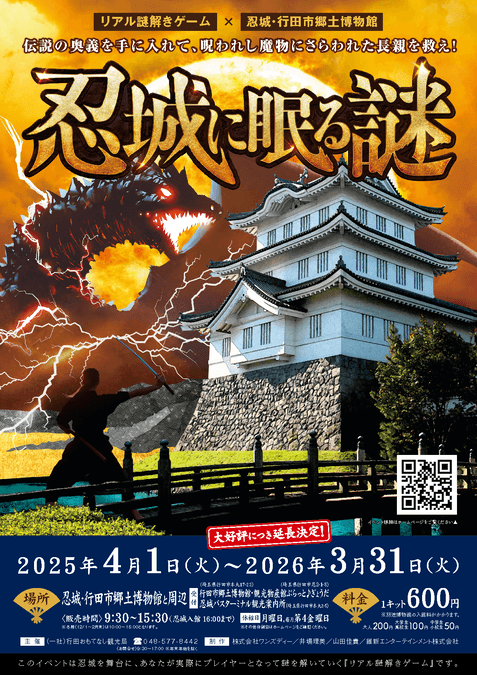 参加者は、歴史情緒あふれる忍城や行田市郷土博物館を舞台に、伝説の奥義を手に入れ、魔物にさらわれた成田長親(なりたながちか)を救い出す任務に挑みます。