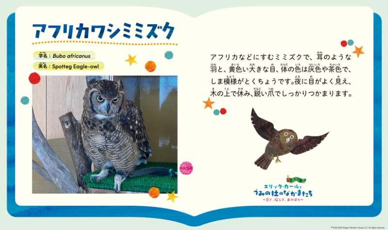 館内各所には、約20種類の生きもの解説オリジナルパネルが設置されます。実際の生きものを観察しながら、すぐそばのパネルと比較することで、エリック・カールの世界観のもと、生きものについて楽しく理解を深めることができます。