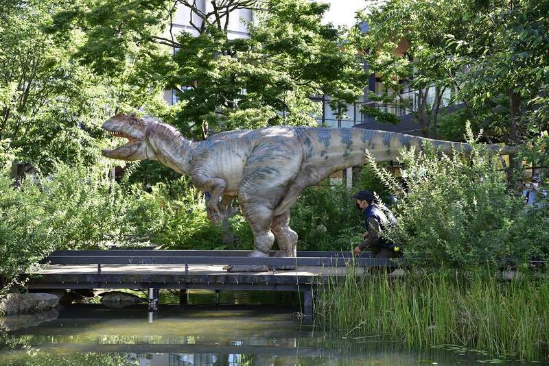 今回登場するのは「アロサウルス」(予定)。約1万平方メートルの中央広場を中心に広がる「GREEN SPRINGS」の敷地を、リアルな恐竜が練り歩きます。