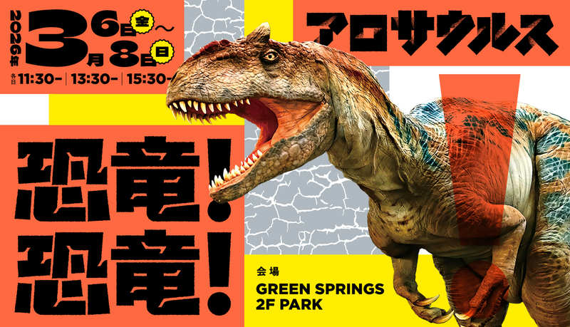 東京都立川市のJR立川駅北口にある複合施設「GREEN SPRINGS」で、2026年3月6日(金)〜3月8日(日)の3日間、「DINO-A-LIVE」の恐竜によるグリーティングイベント「GREEN SPRINGSに恐竜が棲みついた!」が開催されます。