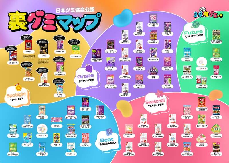 今年は特設サイトにて「裏グミマップ2026」を、2月24日(火)より公開。ぶどうグミの食べ比べ、グミの食感と音の世界、グミで感じる季節など、5つの切り口でグミの裏側を紹介するコンテンツが展開されています。