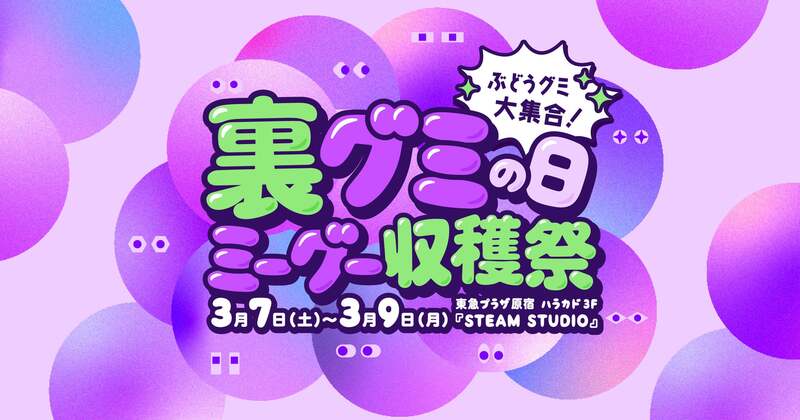 東京都渋谷区の「東急プラザ原宿 ハラカド」3Fで、2026年3月7日(土)〜3月9日(月)の3日間、グミの魅力を再発見できるイベント「裏グミの日!ミーグー収穫祭!」が開催されます。
