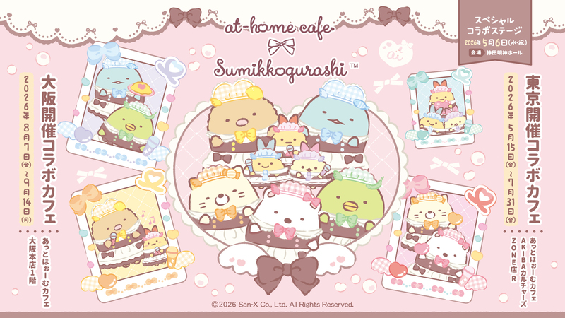 人気キャラクター「すみっコぐらし」と秋葉原の老舗メイドカフェ「あっとほぉーむカフェ」の初コラボレーションカフェが、東京と大阪で開催されます。