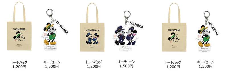 ご当地アイテムとして、ミッキーのアートと開催地名をデザインした各会場限定のトートバッグとキーチェーンも用意しています。※ご当地アイテムは、各会場でデザインが異なります。