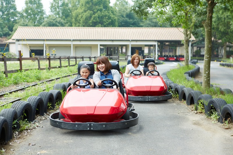 乗り物好きな子供には「ゴーカート」もおすすめ! 森や草原を望むコースで、風を感じながらドライブを楽しめます。