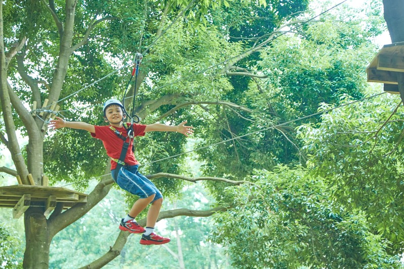 専用のハーネスを装着し、木から木へと移動しながらゴールを目指します。ステージの最後に待ち受けるジップスライドは、とってもスリリング!