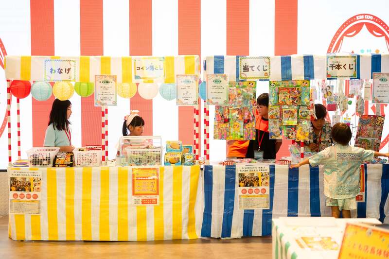 「こども万博」の象徴的なコンテンツが、子供たちが縁日の店長となって運営する「こども縁日・こども店長体験」です。