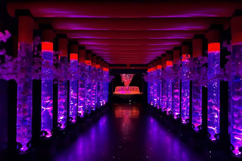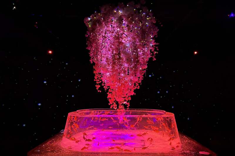 光とクリスタルが輝く「金魚の湧泉」