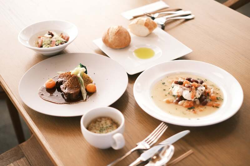レストラン「CREA」では、4月限定の春らしいコース料理のほか、ピンクのスイーツやモクテルが提供されます。
