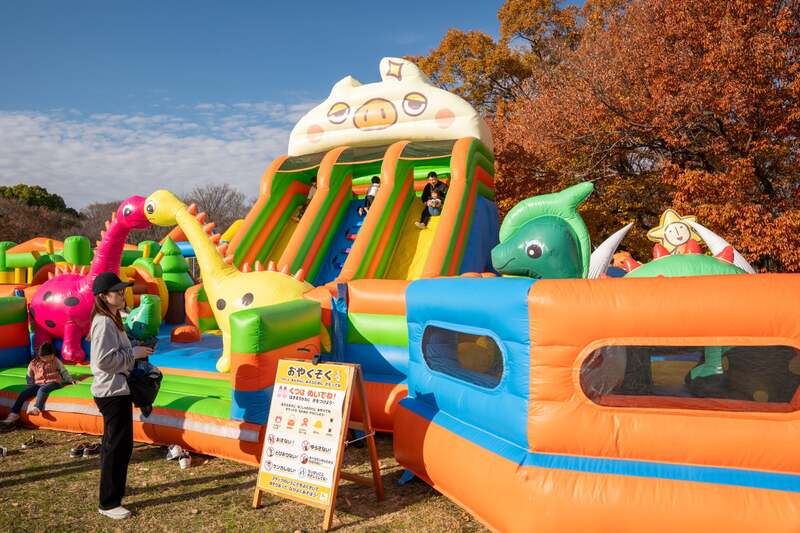 子供が大喜びの超大型エア遊具や縁日も